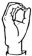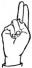 На ћирилици написано АНГЕЛИНА МУМАЛО састоји се из 14 слова [?]. Исписано ћириличном једноручном азбуком за глувонеме: